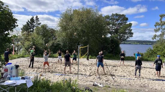 Dagen inleddes med några bollövningar som uppvärmning vilket senare övergick till mer spelmoment. Upplägg, smashar och block testades för att kalibrera in näthöjden och vänja sig vid aktuella sandunderlaget med kornstorlek på ca 0-2mm.