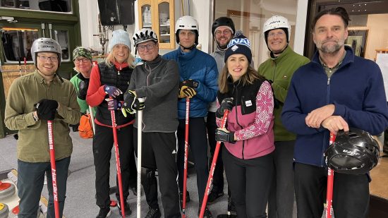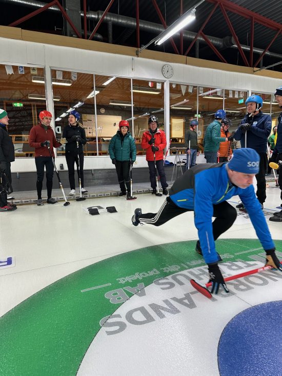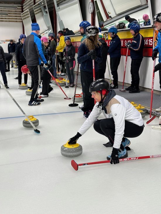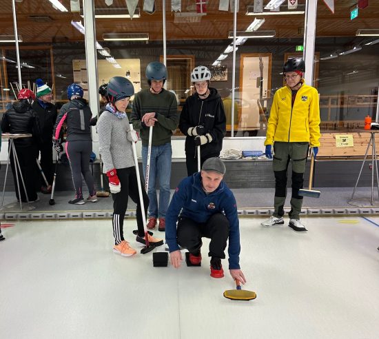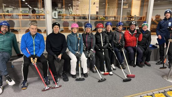 Torsdagen den 8 februari var det återigen dags för vinterns första DG gren, nämligen Curlingen. Hela 46 gubbar och gummor hade tagit sig till Curlinghallen för att utmana varandra. Vi saknade dock Dunderklimparna. Efter teoretisk genomgång äntrades isen iförda glidsulor och huvudbonader i olika varianter. Deltagarna delades in på fyra banor med olika uppgifter på varje bana. Det var inläggningar i boet, garder, slagningar och framknack. Efter idogt kämpande kunde det koras en vinnare av gummorna och en vinnare av gubbarna. Årets segrare bland gummorna blev Petra Åsell och årets segrare bland gubbarna blev Daniel Matthias, stort grattis.