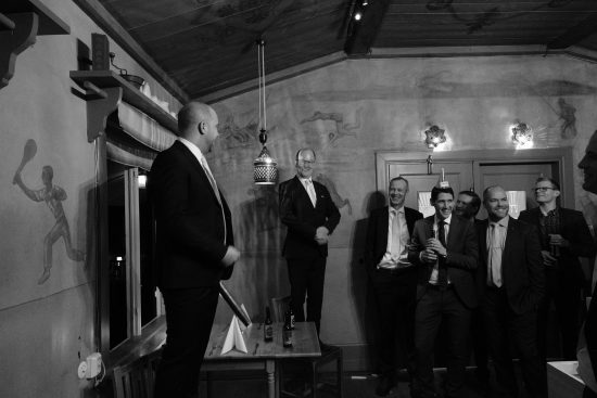 Decenniets första gasque gick av stapeln fredagen den 17 januari. Efter en kort utflykt 2019 till Gamla Teatern för denna tillställning var sällskapet ånyo tillbaka i år till anrika restaurang Hov. God förtäring och sedvanligt mycket trevligt umgänge i all ära, men fokus var trots allt att pröva sex förväntansfulla, intet ont anande, recipienter (i sällskapet även ofta benämnd ”proselyt”). ”Det kan gå! Men det kommer att krävas mycket, mycket mer än det ni visat hitintills…” var juryns avmätta och luttrade omdöme gällande recipienternas kunskaper och färdigheter och allmänna lämplighet. Trots det lyckades alla sex klara sig igenom nålsögat och vi fick därför nöjet att välkomna dessa nya gubbar i sällskapet DG 🙂