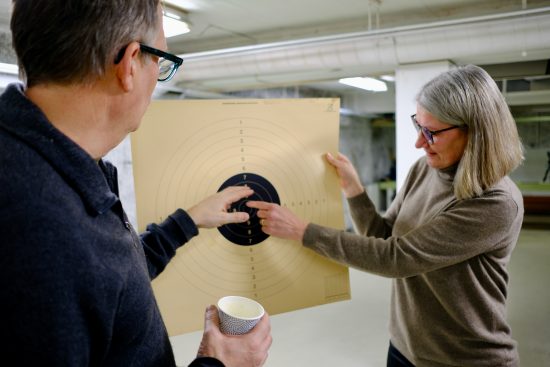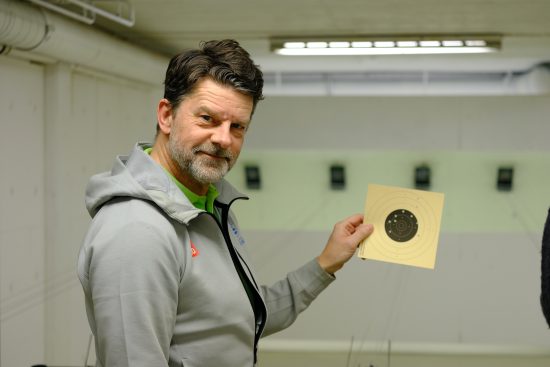 DG medlemmarna, som kommit att bli som en stor familj, minglade till en början runt med varma drycker i handen. Ängsligt spanande på dom små målen, från något som uppfattas som ett lika oövervinnerligt som toklångt avstånd. Doften av nybak… (inköpta) gifflar & kaffe blandades med lukten av bly och krut – En perfekt kombination av nostalgi och gemenskap fyllde lokalen. Runt omkring deltagarna hängde medaljer & bilder från tidigare tävlingar som vittnar om fornstora dagar för klubben. När det så var dags för tävling, var det mer av en lek än ett nervpirrande OS. Deltagarna turades om att skjuta, och varje missad träff blev föremål för skratt och uppmuntran. Det är inte alltid resultatet som räknas, utan deltagandet, vilket översteg 50 till antalet tävlande! Extra roligt att så många av dom yngre ville vara med och prova den ädla sporten luftgevärsskytte. Samt att dom gjorde det med både entusiasm & med att skjuta som framtida mästare!