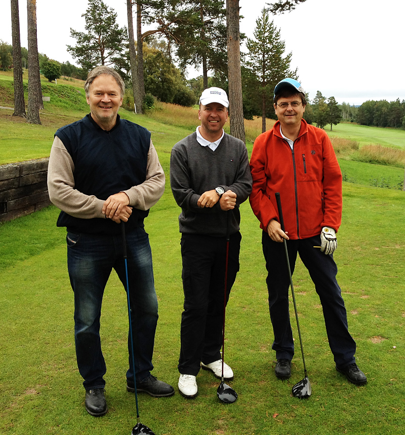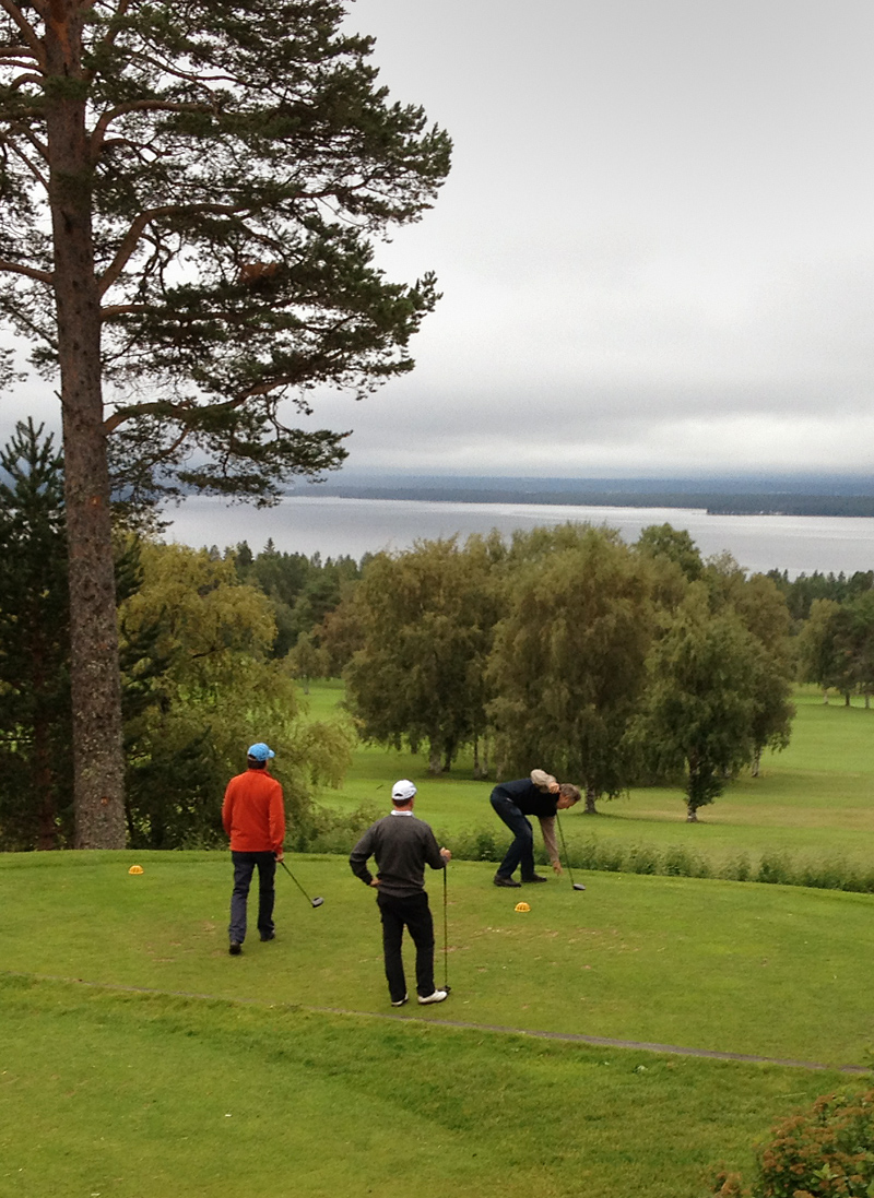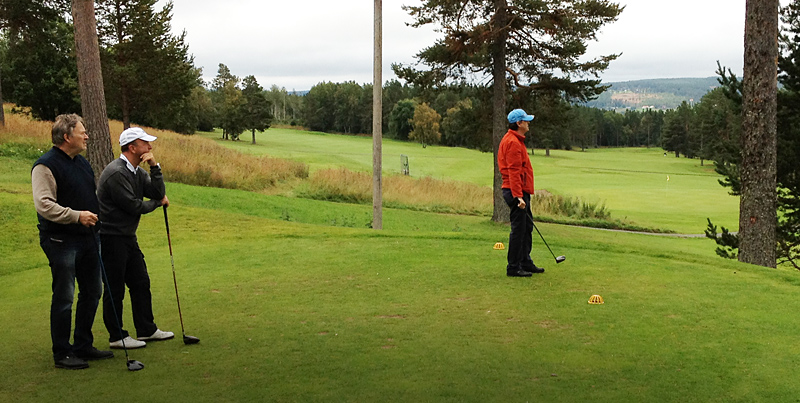 Dundergubbarnas mästerskap, utlyst som en golftävling, utvecklade sig närmast till en biathlontävling. Huruvida det andra momentet bestod av ren simning eller någon polovariant överlåter jag till deltagare och betraktare att själv avgöra – men vi slapp i vart fall hagel eller snö detta år! Tyvärr hade tävlingsledningen ingen undervattenskamera tillgänglig, varför bildbevisen dessvärre, eller dessbättre, begränsades till första bollens utslag på hål 1! Men alla tävlande simmade i mål, även om Tomas Sundström efter alltför många kallsupar valde att byta gren – kombinationen fotboll/simning i Ås lockade.