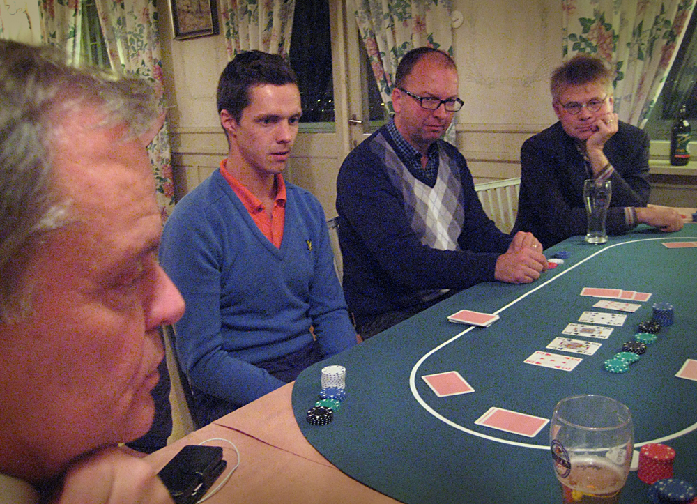 Fyra till synes helt avspända pokergubbar. Skenet bedrar dock…