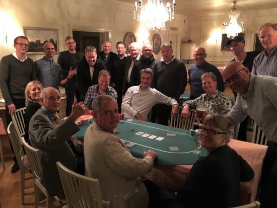 DG:s höstmörkerbrytande aktivitet Poker avspelades nyligen under sedvanligt trevliga omständigheter. Som alltid god pytt med tillbehör hos Acke och Irene på Östbergsgården och som vanligt tog Dag upp allehanda DG-snapsvisor med bravur.