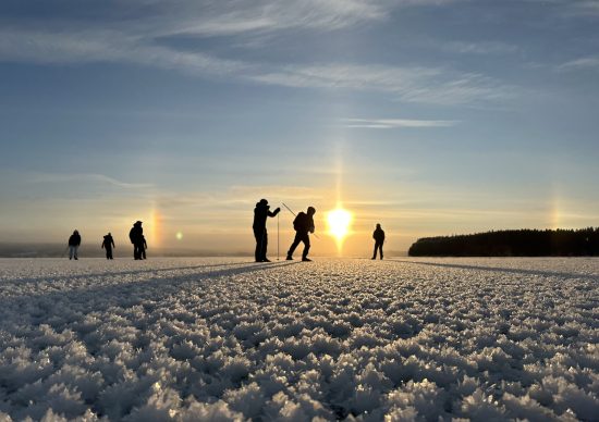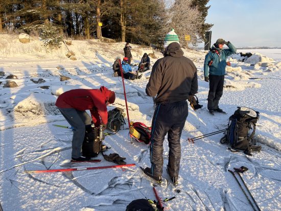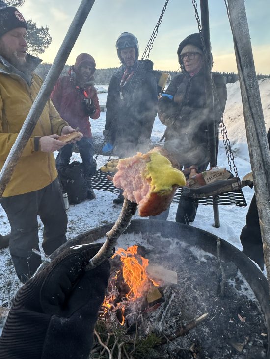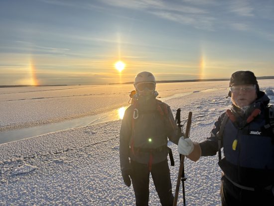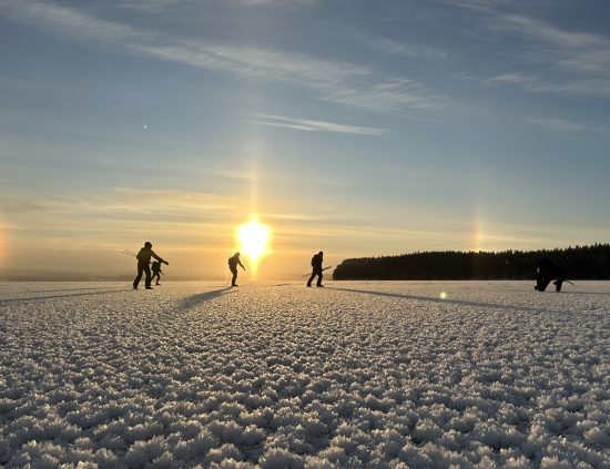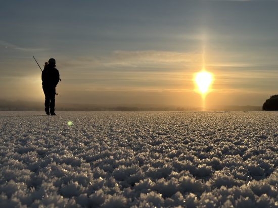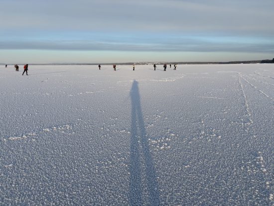 Än en gång har sällskapet fått njuta av storslagen is i början av januari. Ja, det var kallt – men gruppen tog det lugnt och kände efter med jämna mellanrum. På något sätt hänger det ganska logiskt ihop: Storsjön fryser när det är kallt, och det behöver vara riktigt kallt eftersom sjön är stor och djup. Det gör att när den väl fryser, så är isen som bäst och mest intressant precis därefter. Alltså då det är kallt. Is är kall.